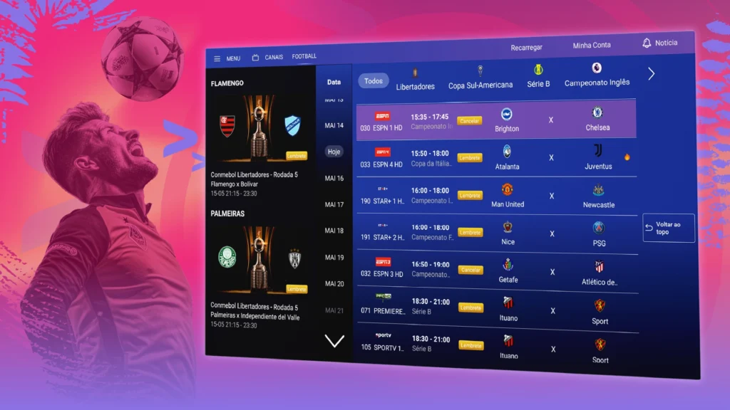 - Sintonização de Partidas: Facilmente encontre e sintonize seus jogos preferidos.